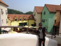 Untuk sampai ke Petitte France, setelah keluar dari stasiun Cheongpyeong, kita langsung naik taksi selama sekitar 15 menit melewati jalan menikung dan naik-turun khas daerah pegunungan. Pokoknya si Petite France itu bener-bener jauh ke mana-mana deh. Gue nggak yakin tempat ini bisa populer di kalangan turis kalo bukan karena drama Korea yang mengambil gambar di pusat kebudayaan Prancis itu. Soalnya bisa dibilang, nyaris tidak ada aktivitas apapun yang bisa kita lakukan di Petitte France kecuali foto-foto. Meski begitu, gue tidak menyesal datang ke sana. Gue belum tentu bisa berfoto di tempat lain dengan background yang sama uniknya. Arsitekturnya tampak cantik, dengan permainan warna bangunan yang eye catching.