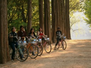 Lalu apa yang bisa kita lakukan di Nami Island? Apalagi kalau bukan bersepeda mengelilingi pulau! Bersepeda jadi sangat populer di pulau ini karena hal yang sama juga dilakukan oleh tokoh utama di serial Winter Sonata. Kemudian di tengah-tengah pulau, kita akan menemukan patung first kiss Winter Sonata yang selalu menjadi photo spot favorit turis-turis yang datang ke sana.