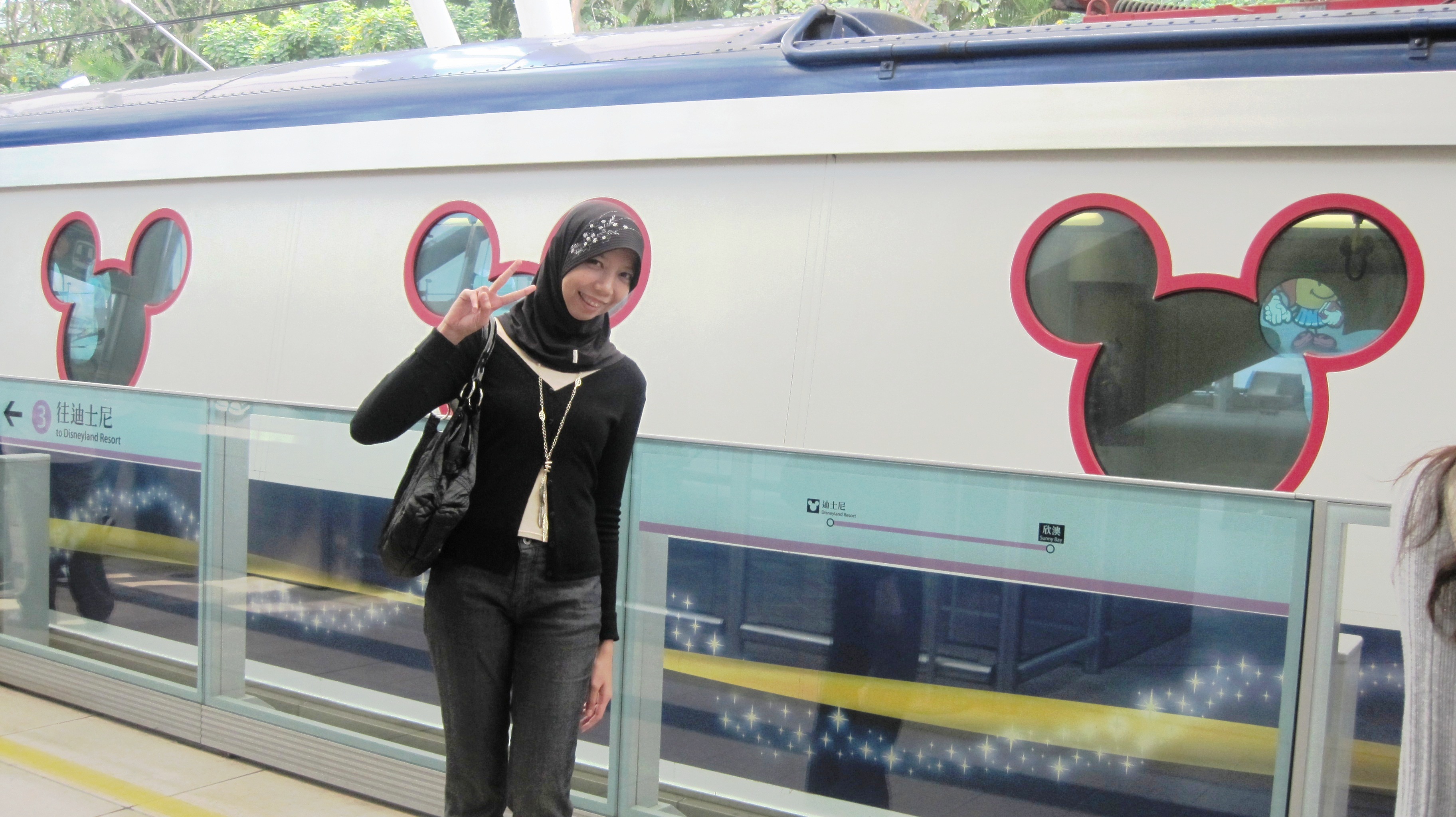 USS terlihat lebih sederhana untuk urusan the entrance gate. Selain globe besar bertuliskan ‘Universal Studio’ yang sudah menjadi ciri khas USS itu, kalo menurut gue tidak ada hal menarik lain dari tampak depan amusement park ini. Berbeda dengan Disneyland yang dari MTR-nya saja pun sudah kelihatan imut-imut. Tidak terhitung ada berapa foto yang gue ambil mulai dari menjejakkan kaki di stasiun MTR Disneyland line sampai kemudian resmi masuk ke arena bermainnya.