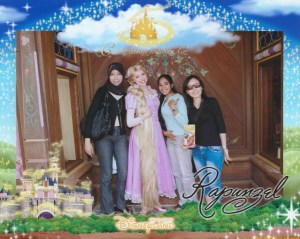 Di Disneyland ada banyak banget banget karakter yang gue kepengen foto bareng mereka. Ada Mickey & Minnie Mouse, Winnie the Pooh, Tinker Bell, sampe tiruan Rapunzel lengkap dengan rambut super panjangnya. Sayangnya, cuma buat berfoto dengan mereka aja harus rela antri panjang dulu… Makanya dari semua karakter, cuma foto bareng Rapunzel aja yang gue ikutan. Gue bahkan rela ngeluarin uang lebih buat menebus foto gue bareng si Rapunzel. The picture looks so cute!