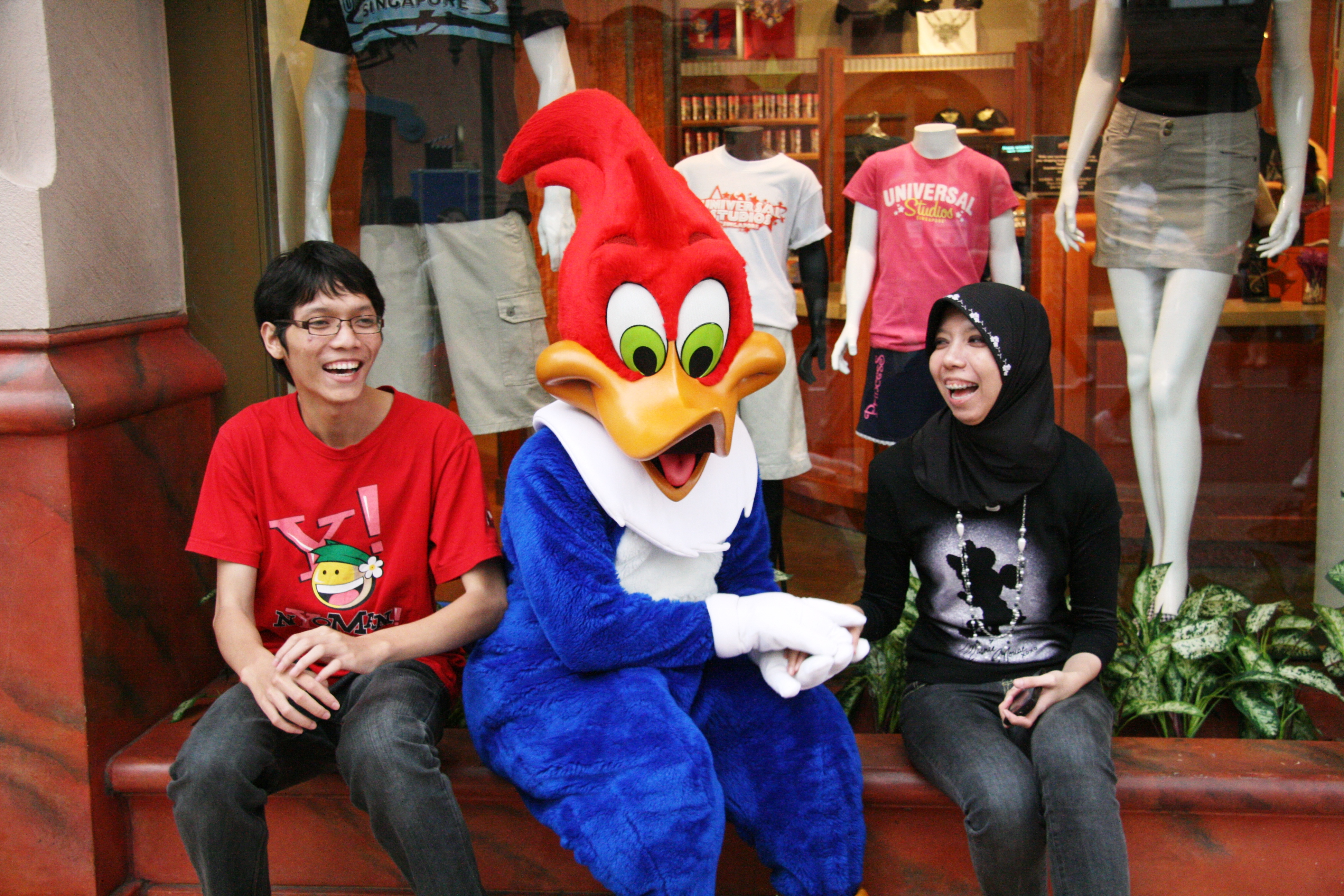 Di USS juga ada banyak sesi buat meet the characters. Ada Woody Wood Pecker, Bumble Bee-nya Transformers, ada pula tiruan Cleopatra yang terlihat cantik dan sensual. Awalnya gue nggak gitu kepengen foto bareng Bumble Bee, tapi lama-lama gue penasaran… si Bumble Bee itu orang yang menyamar jadi robot atau memang beneran robot yang bisa bergerak dan berjalan sendiri? Dan ternyata bener aja lho… si Bumble Bee di USS itu emang asli robot yang ukurannya lebih tinggi dari manusia pada umumnya! Kemudian setelah Bumble Bee, gue juga foto bareng Woody Wood Pecker yang kocak banget! Si badut Woody suka bikin gerakan-gerakan lucu yang bisa dengan jeniusnya memancing tawa orang lain. Taking picture with Woody was so much fun!