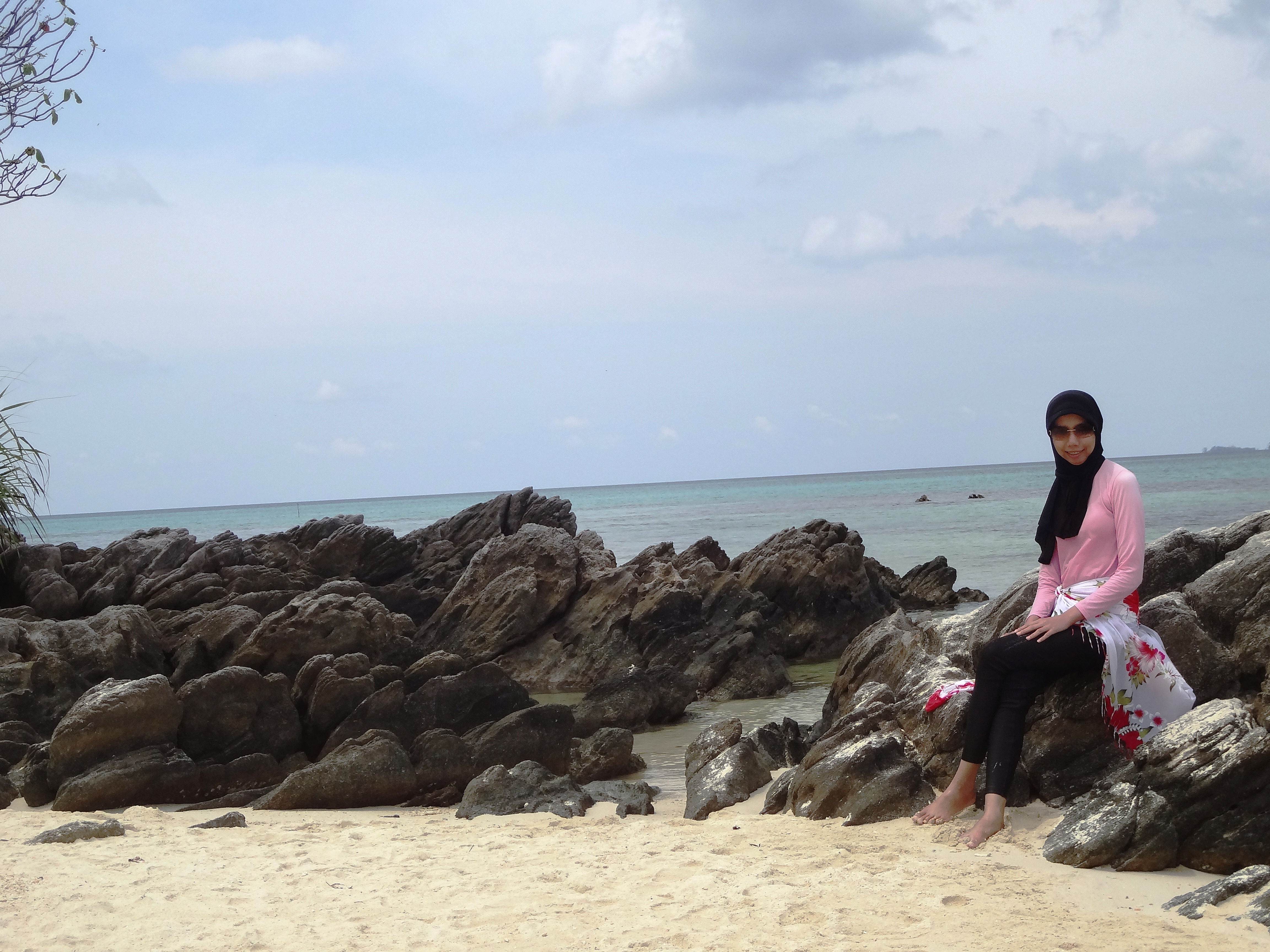 Setelah selesai acara snorkeling yang terakhir, kita dibawa ke sebuah pulau yang perairannya cenderung dangkal. Lagi-lagi, tempat yang bagus untuk berfoto. Dan kalo menurut gue, warna laut di pulau inilah yang paling cantik jika dibandingkan dengan pulau-pulau kecil lainnya. Perpaduan warnanya sedikit mirip dengan Phi-phi Island. Hanya saja sayangnya, dari beberapa kali foto yang gue ambil, tidak satupun yang berhasil mencerminkan cantiknya perpaduan warna yang gue maksud itu. Hal ini baru bisa tertangkap kamera dalam rekaman video, hanya saja sayangnya, gue nggak berlangganan fitur blog yang supaya bisa upload video. Jadi… gue cuma bisa share foto-foto yang seadanya saja lah yaa.